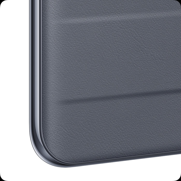 Designul carcasei de tip valiză vă amintește de sentimentele pe care le trăiți atunci când călătoriți. Simțiți robustețea din designul grilei orizontale. Simțiți confortul de la culoarea desaturată și neutră de gri voyager. Simțiți moliciunea din textura de piele vegană.